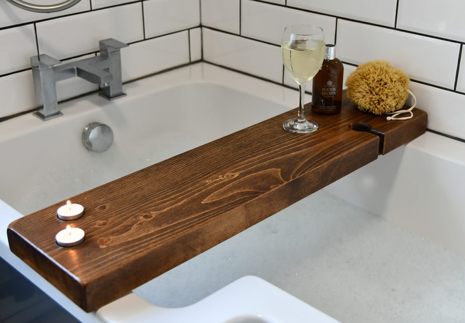 Handmade Rustic Bath Board, available in two sizes to fit your bathtub perfectly. Crafted from high-quality Canadian Pine, this bath board offers a stylish and eco-friendly solution for your next soak.
