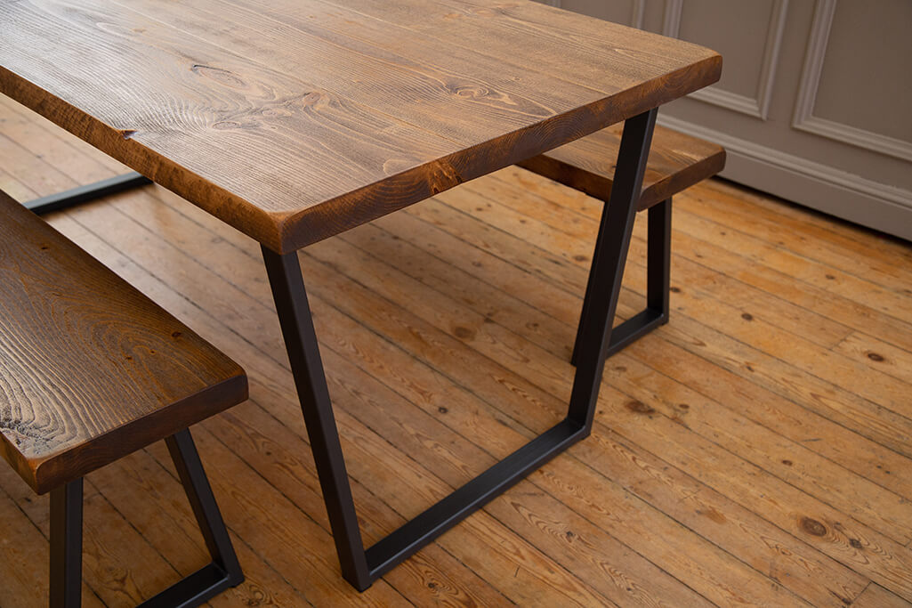 Its solid wooden top is made from our quality Canadian pine and sleek steel robust framework contains tube inserts to protect your floor.
