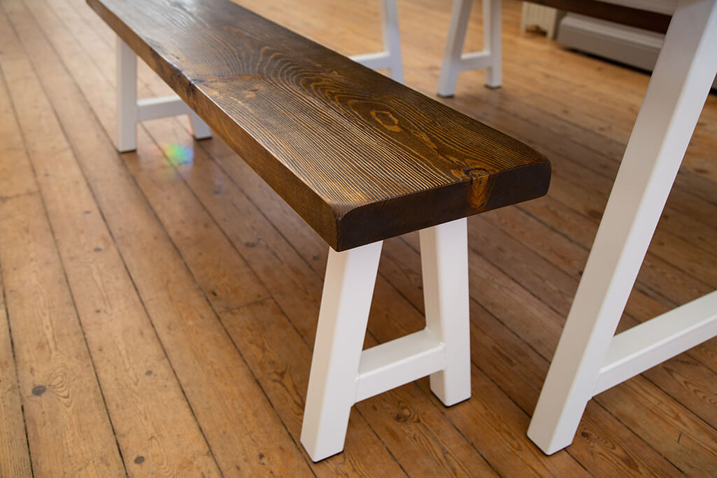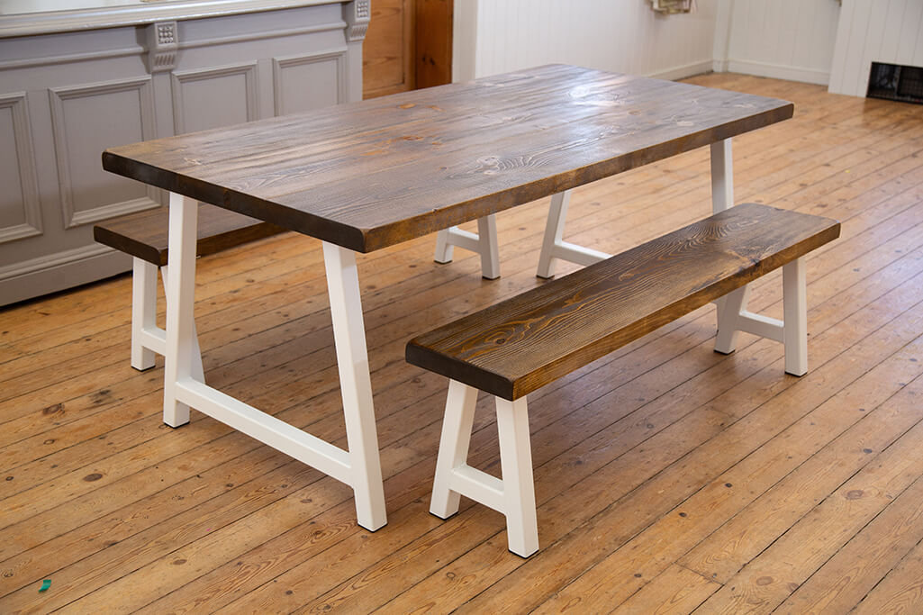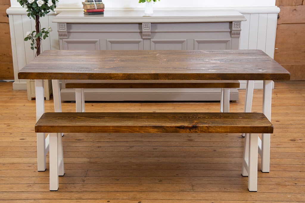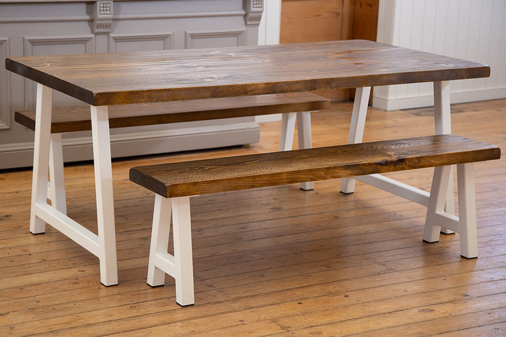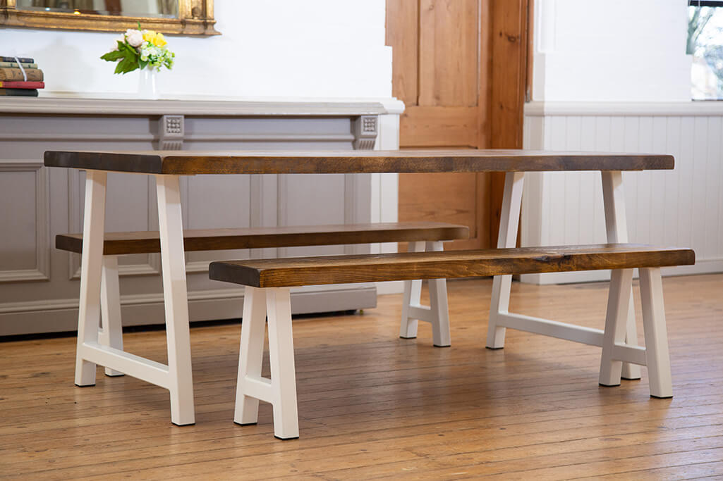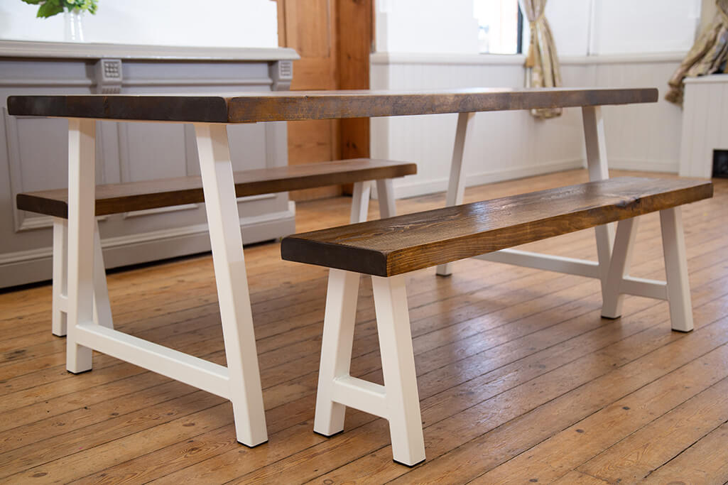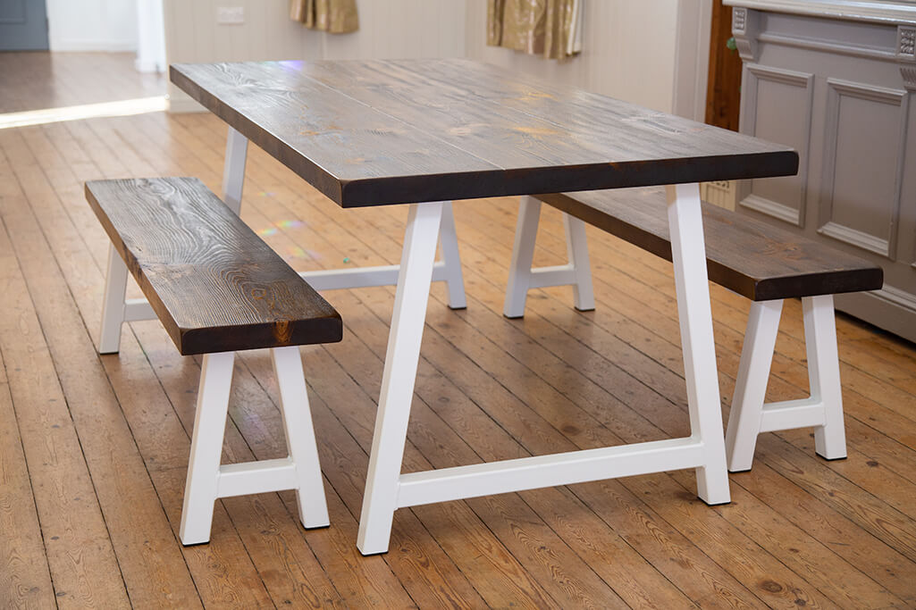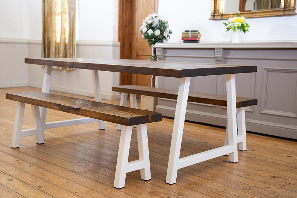The robust steel 'A' frame base complements the tabletop and can be powder coated in any colour you require or choose from the pre-selected colours available so that your table fits in with any home.