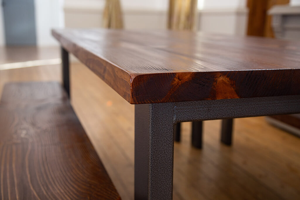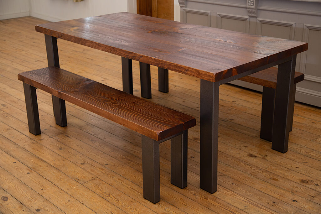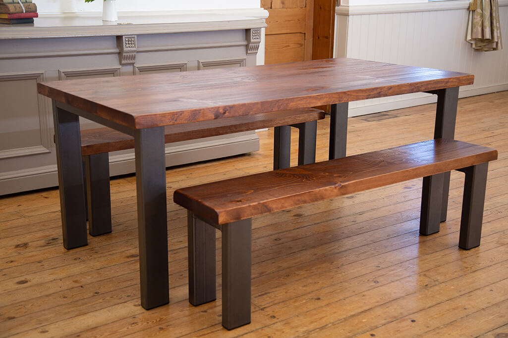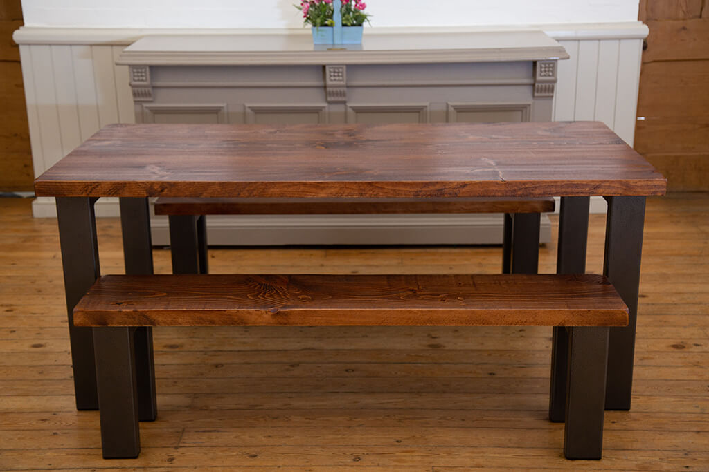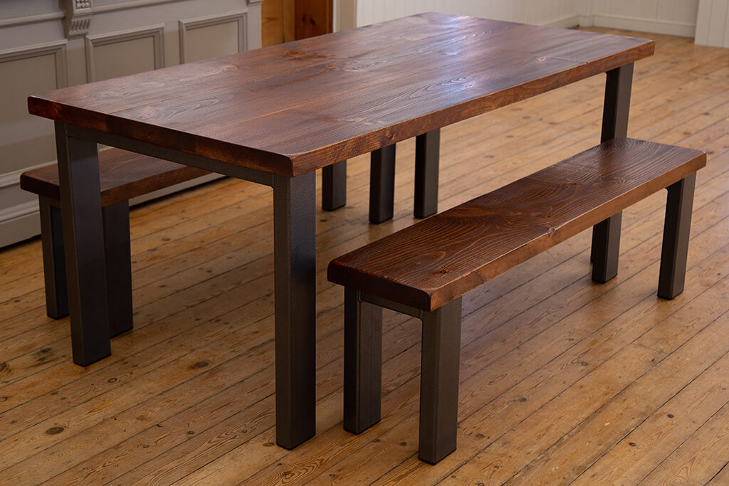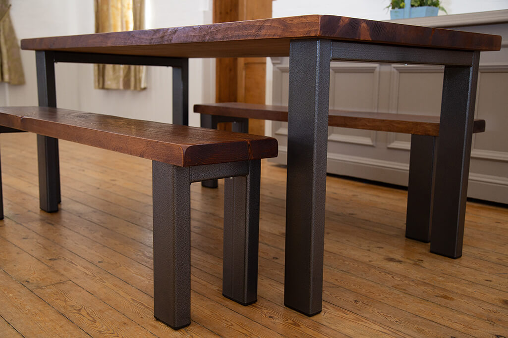 The Sheraton has chunky steel table legs shown in our gallery which is made with walnut hardwax oil and hammered silver frames. It is available with a stylish powder-coated metal frame and you can choose any of our standard colours shown providing you with the opportunity to create a customised centrepiece for your home.