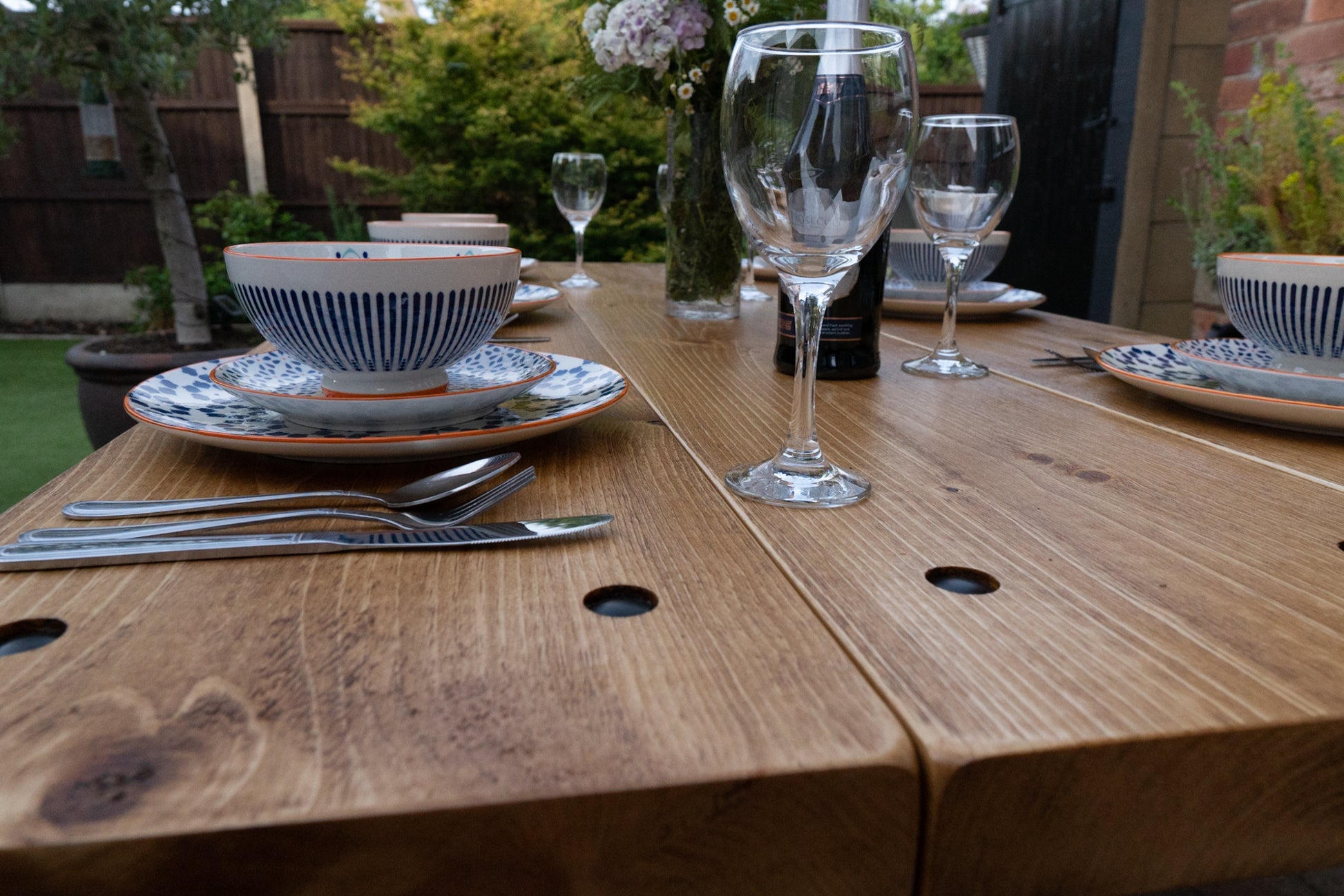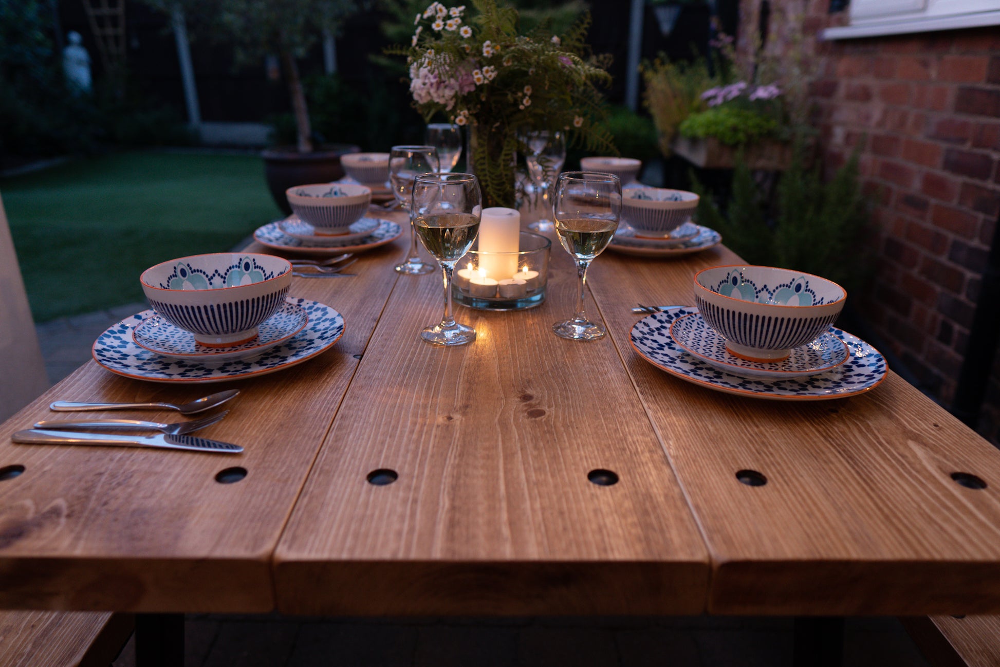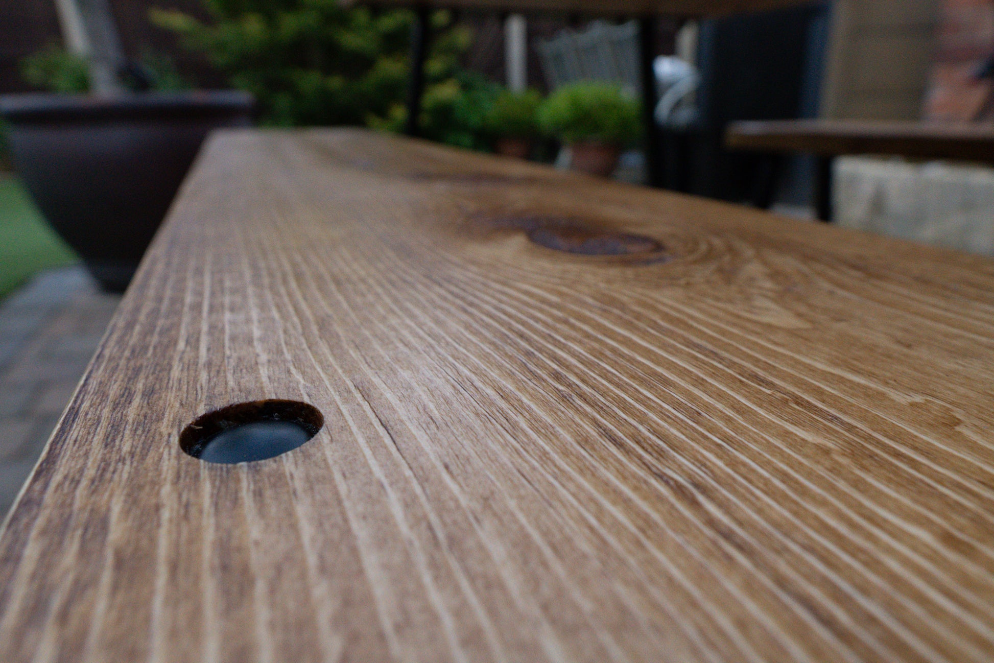 We've selected kiln-dried Canadian Pine for this outdoor masterpiece, revered for its inherent rustic charm and character. Comprising three separate planks with deliberate gaps, this design ensures efficient water runoff and accommodates potential seasonal movement.